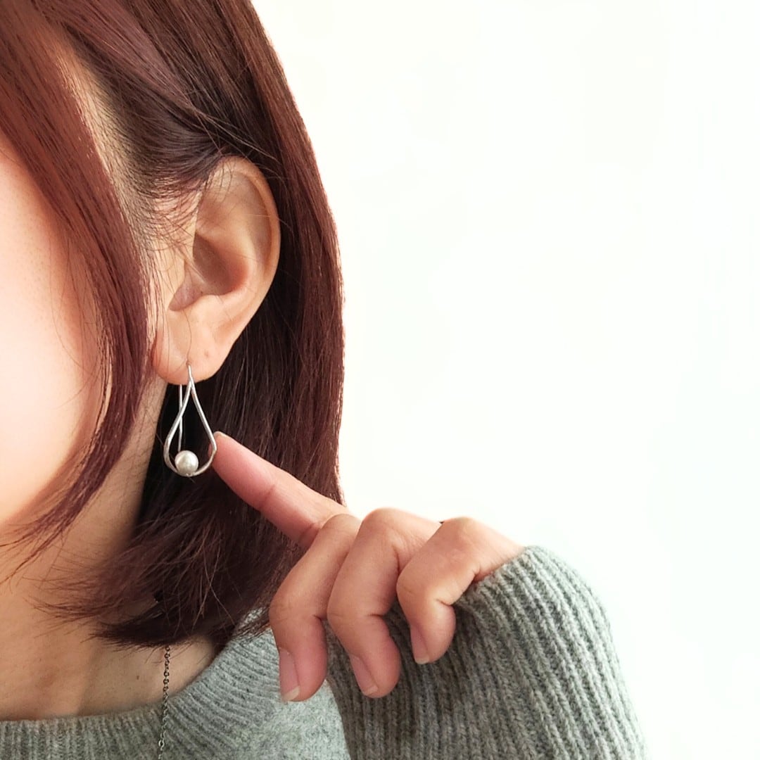 毎日のコーデに、そっと華やぎを添えるドロップ型パールピアス。